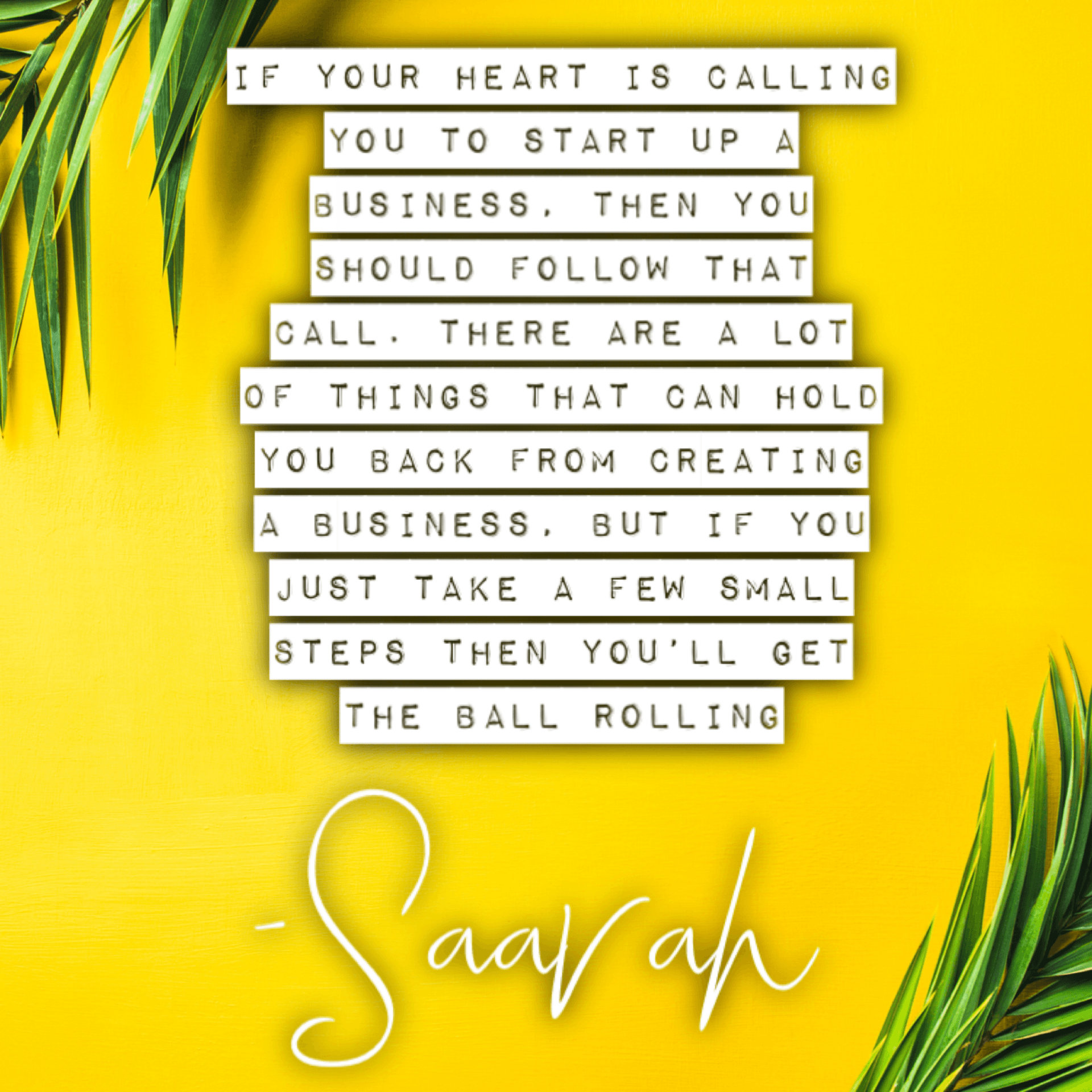Saarah: Don’t let fear hold you back! If your heart is calling you to start up a business, then you should follow that call. There are a lot of things that can hold you back from creating a business, but if you just take a few small steps then you’ll get the ball rolling! And making sure your business connects to your passions is definitely another important aspect when starting up a business.