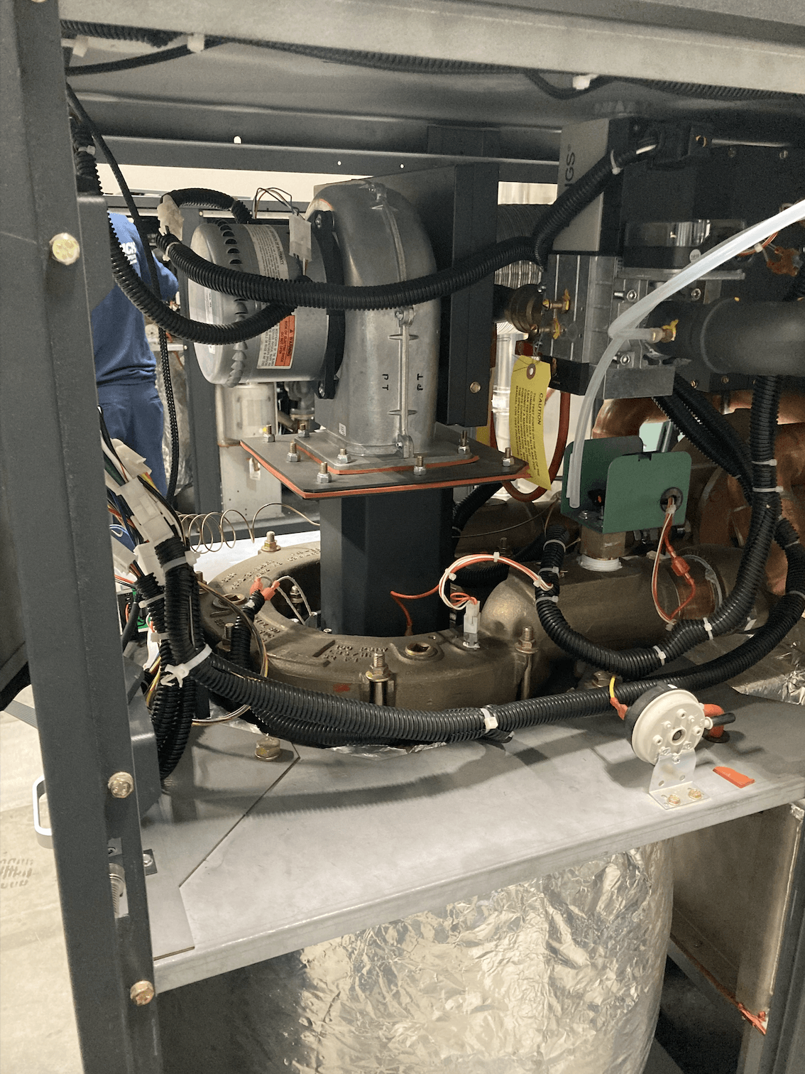 During the hands-on training, our team members also had a unique opportunity to dive deeper into the equipment. Attendees are typically subdivided into groups, then assigned to the different units on rotation, for lessons on diagnostics and tear-downs. Our team members were in the last group and one of the boilers intended for training was not functioning properly, so the other training groups were planning to accommodate for additional trainees. Upon hearing this status update, Senior Tech/Field Staff Supervisor Jack, volunteered to diagnose and repair the boiler. Once the unit was functioning properly, they then set the unit’s combustion. Post-boiler repair, Jack saw the perfect opportunity for our Regional Service Technicians to gain more in-depth experience with Raypak products: “After that, I asked the instructors if I could show my team members a few more things when we were working on the [units…]. The instructors let us open the burner compartment and we removed the gas train and burners,” enabling our technicians to demonstrate their growing skillsets.
