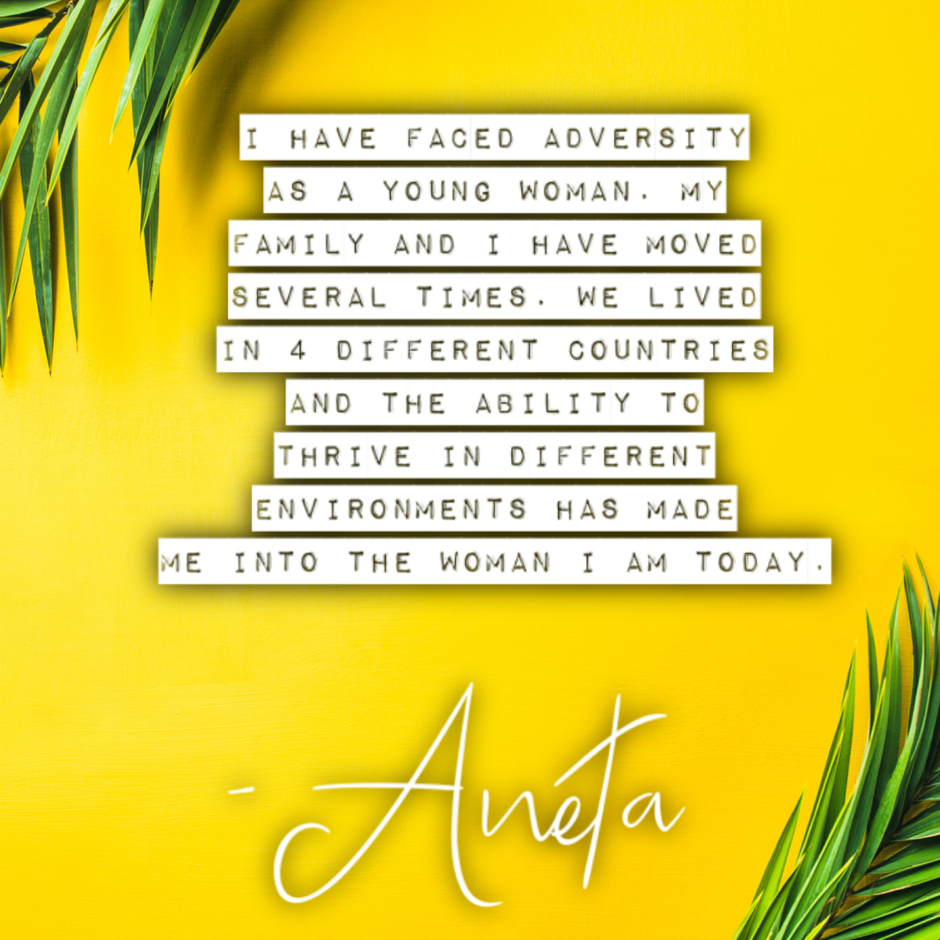 I have faced adversity as a young woman. My family and I have moved several times. We lived in 4 different countries and the ability to thrive in different environments has made me into the woman I am today. As a businesswoman, I am thankful because I view it as a positive and valuable learning experience.
